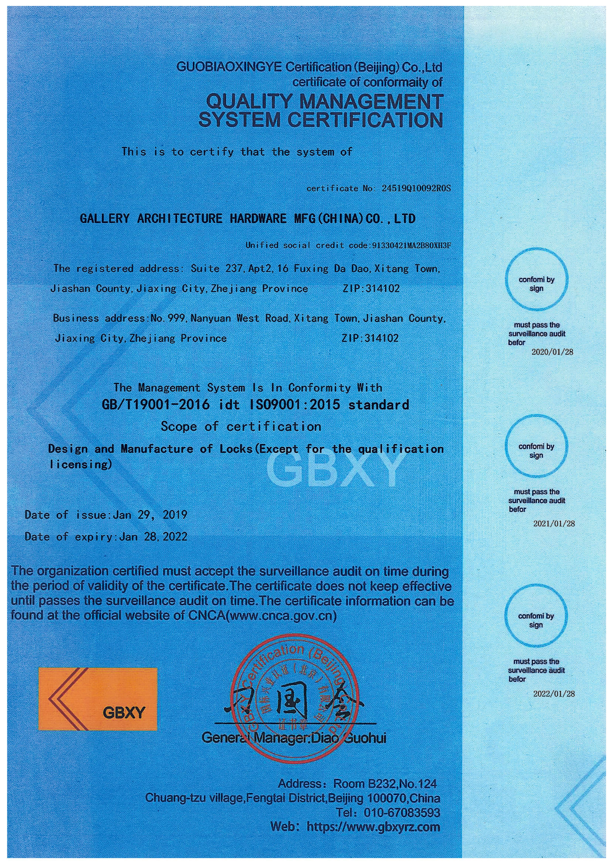 浙江堅迪五金制造有限公司始建于 1995 年。自 2003 開始,公司致力于高標準商業(yè)鎖的研發(fā)工作,并于 2006 及 2007 年,8700 插芯鎖系列獲得美國國家標準 ANSI A 156.13-2005 一級、ANSI A 156.2-2003 二級和美國 UL 10C3 小時防火測試認證。自 1998 年以來,公司不斷提升產(chǎn)品和客戶服務(wù)品質(zhì),并獲得了 ISO 9001 的認證。